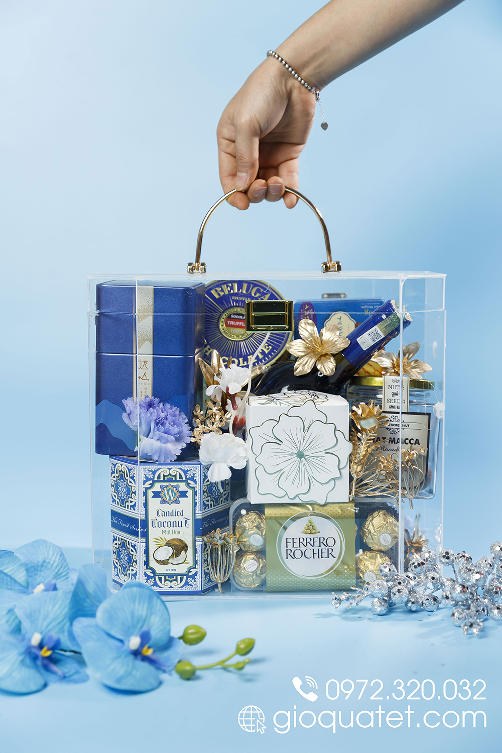 Giỏ Quà Tết V605 (Tone Xanh) – Set Quà Cao Cấp, Thanh Lịch Để Tri Ân